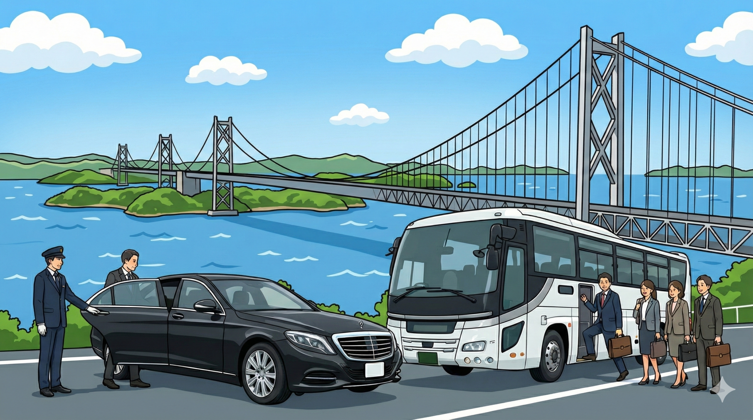 香川送迎コンシェルジュは、高松から西讃エリアまでを広くカバーし、企業の皆様へ安心・安全な移動サービスを提供しています。